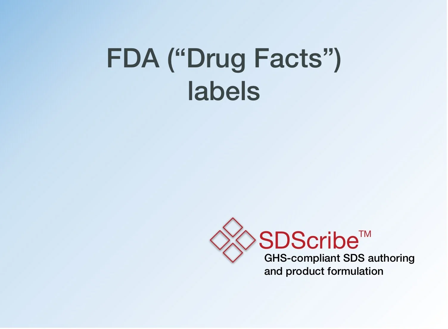 The optional FDA labels feature of SDScribe™ leverages the Safety Data Sheet component list to separate active ingredients from cosmetic ones, colorants, fragrances, and other inactive ingredients. An “FDA label” tab enables you add the other details, and then to generate fully-editable FDA labels. You can customize, print, and/or export them, as you wish.