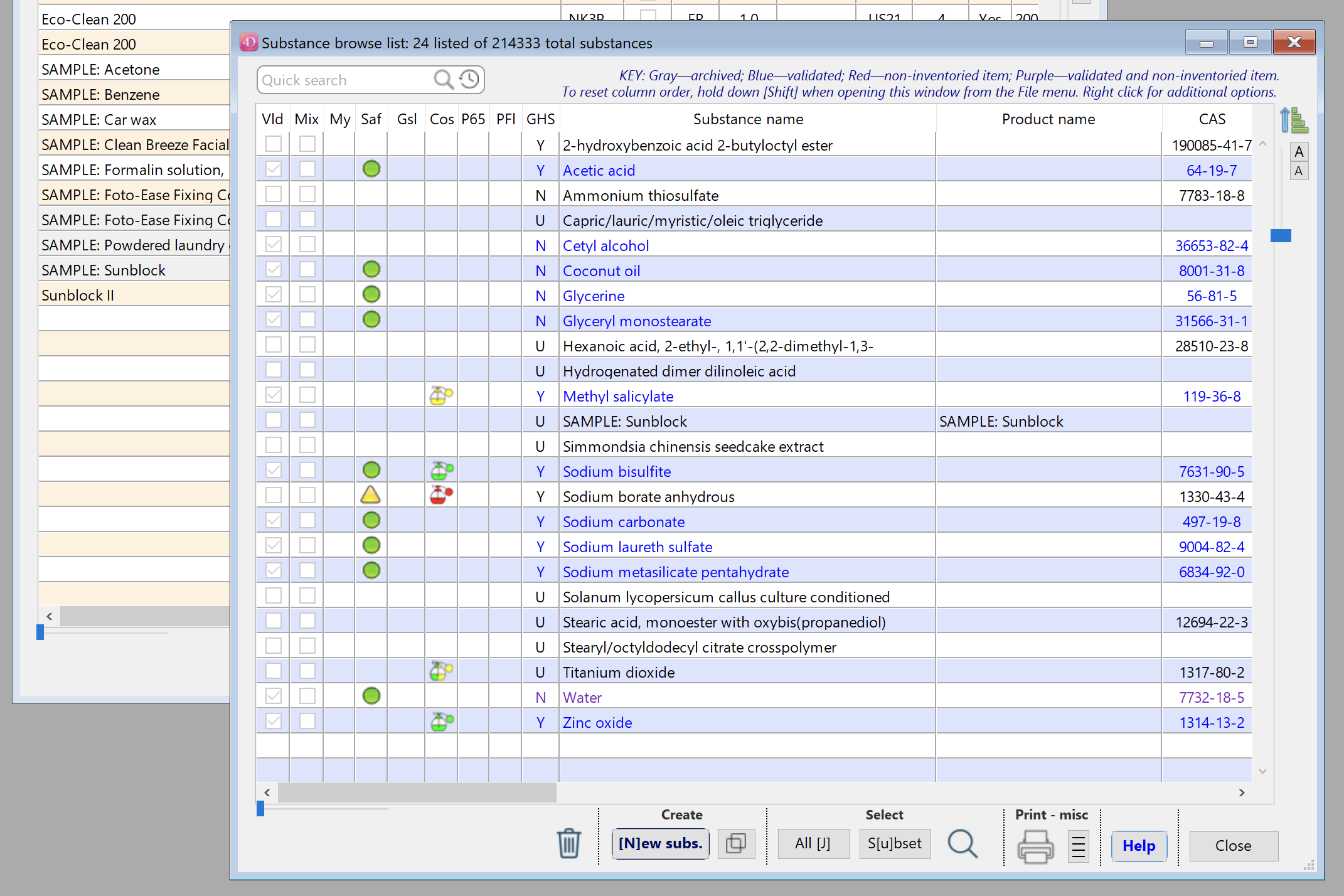 “List Substances for SDSs” will now display Substance records for the components (ingredients) of the SDS products. Previously, the program only displayed Substance records directly linked to the SDS product itself.